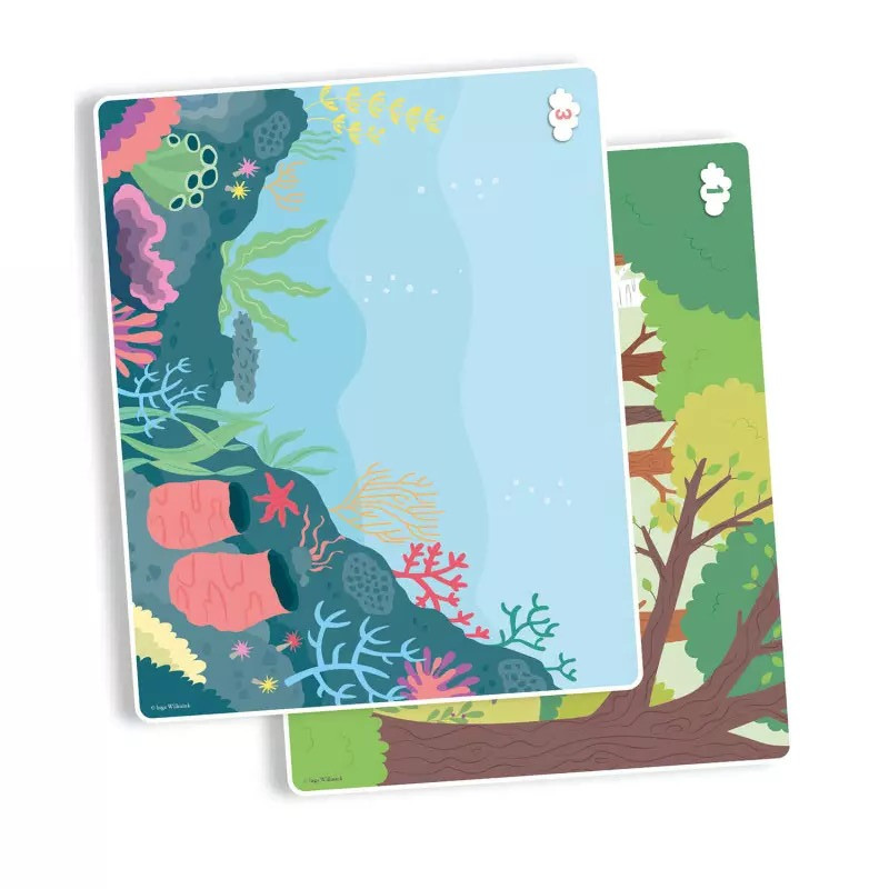 A csomag 6 különböző hátteret kínál, melyek mindegyike lehetőséget ad a gyerekeknek, hogy saját dinós világukat megalkossák. A 200 darab áthelyezhető és újrafelhasználható matrica nemcsak szórakoztató, hanem oktató jellegű is, hiszen a gyerekek játék közben ismerhetik meg a különböző dinoszauruszokat. Az egyes hátterek különálló lapokból állnak, így több gyermek is játszhat egyszerre, anélkül, hogy egymás munkájába ütköznének. Ez a készlet nem csak a szórakozást, hanem a társas készségek fejlesztését is elősegíti, mivel a kicsik közösen játszhatnak, történeteket találhatnak ki és megoszthatják egymással ötleteiket.