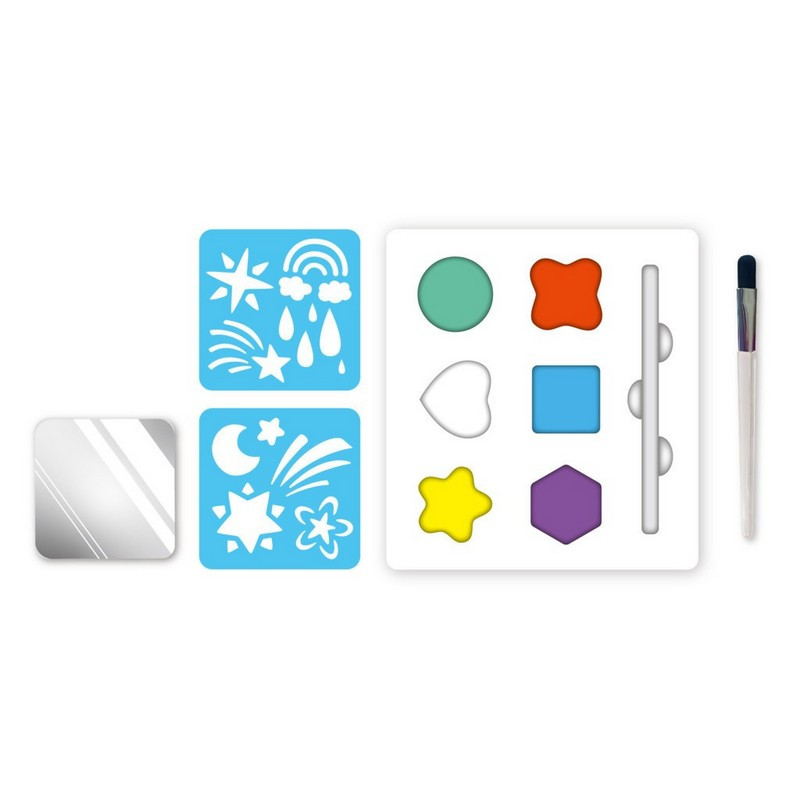 A készlet hat gyönyörű arcfesték színt tartalmaz, amelyekkel különféle mintákat és dizájnokat lehet megalkotni. Az újrafelhasználható stencil sablonok segítenek az egyedi minták egyszerű létrehozásában, míg az ecset lehetővé teszi a precíz festést.