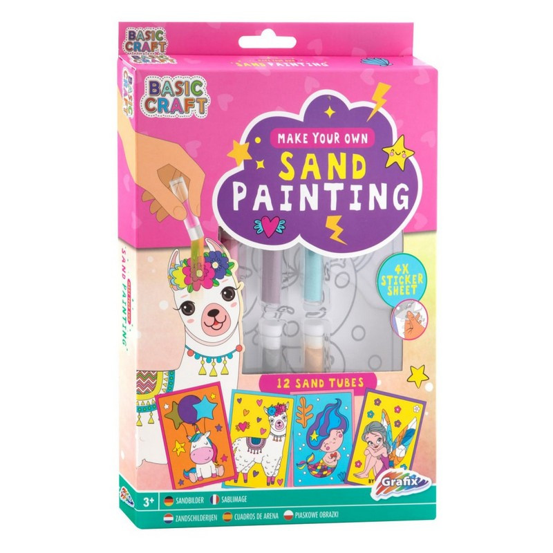 A készlet 12 különböző színű homokkal érkezik, amelyek lehetőséget adnak a színek szabad kombinálására, így bármilyen témájú képet könnyedén megvalósíthatsz. A négy öntapadós kép alapként szolgál, amelyeken a kiválasztott színekkel és mintákkal kísérletezhetsz. Kezdésként válassz egy képet, majd óvatosan távolítsd el a védőréteget a kívánt területről, hogy felfedje a ragadós felületet.