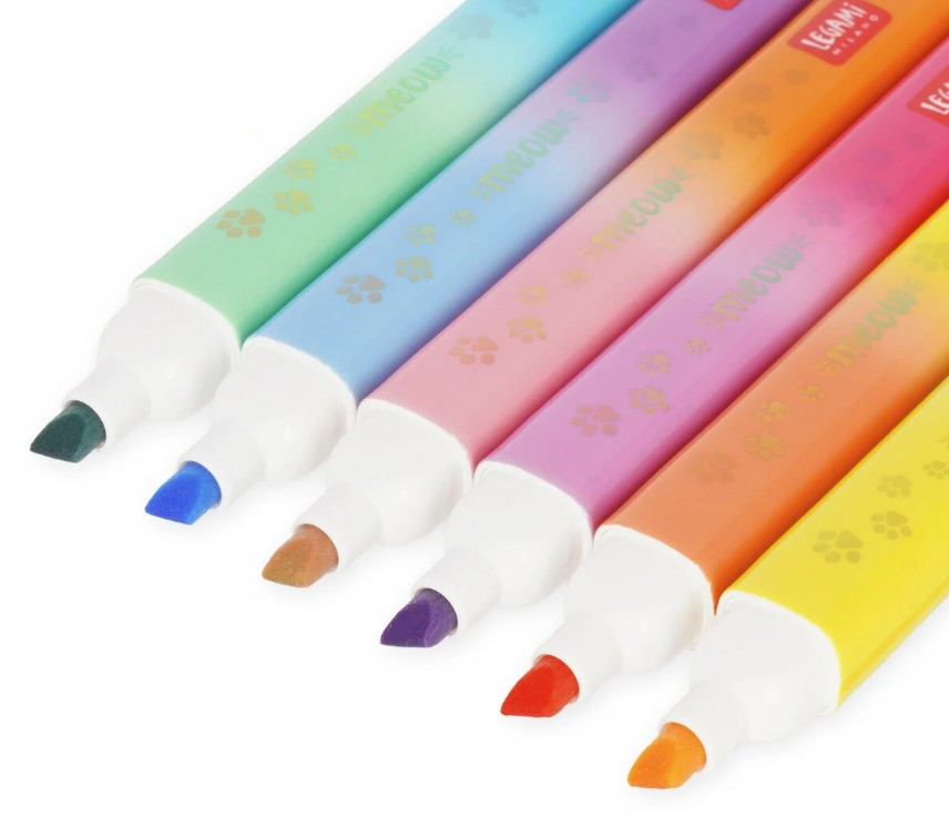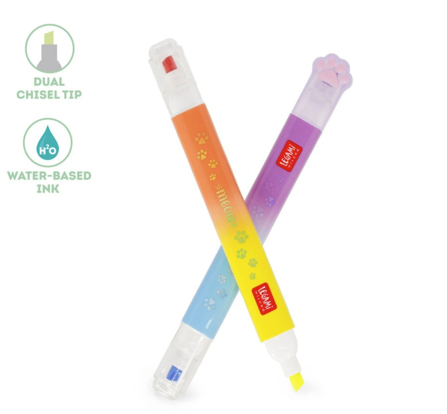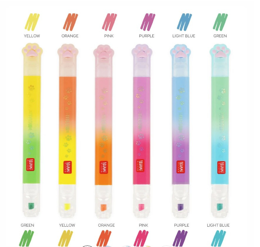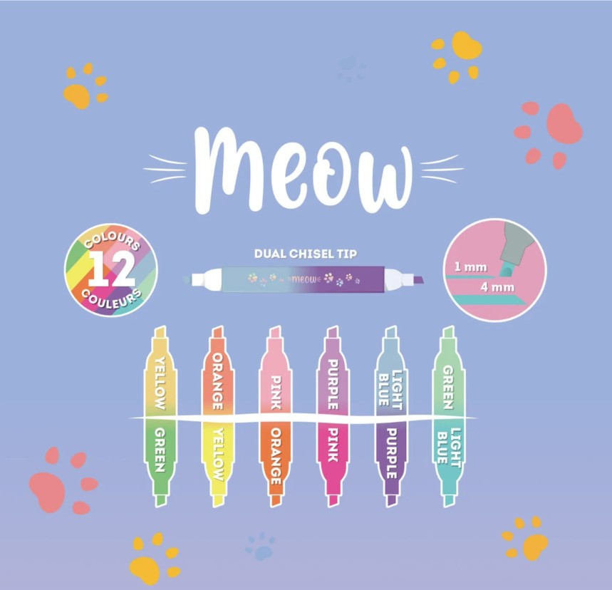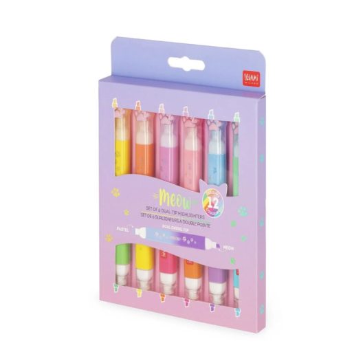 Változtasd a tanulást egy izgalmas, színes kalanddá! A Legami Meow kétvégű szövegkiemelő készlete a tolltartó legcukibb és leghasznosabb lakója lesz. Ezt a különleges kollekciót azoknak az óvodásoknak és kisiskolásoknak tervezték, akik imádják a cicákat, és szeretnék a saját stílusukra formálni a füzeteiket.