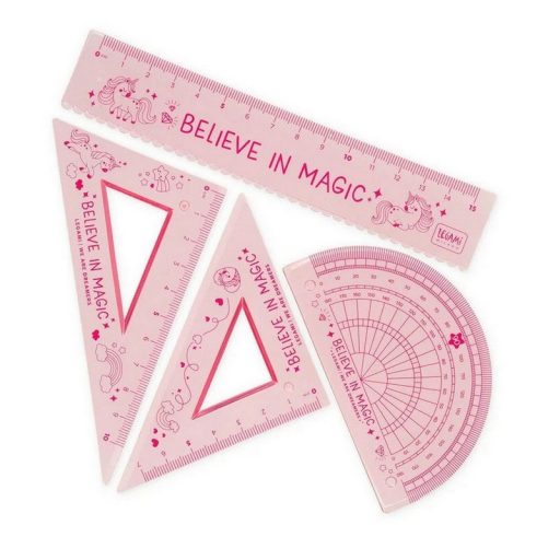Legami vonalzókészlet, 4 részes, műanyag, hajlítható, rózsaszín, unikornis