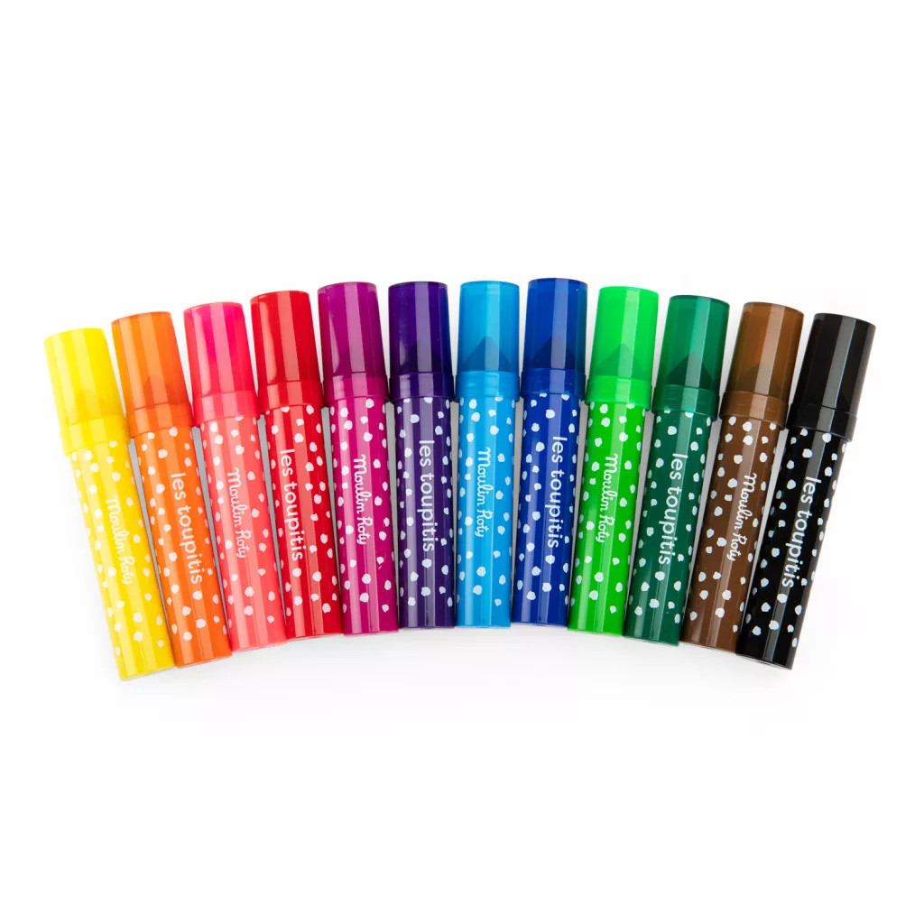 A 12 darabos filctoll készlet vastag kialakításának köszönhetően könnyen megfogható, így a kisebb gyermekek számára is ideális választás. A kúpos hegy segít abban, hogy a vonalak, formák és alakzatok pontosan és szépen jelenjenek meg a papíron.