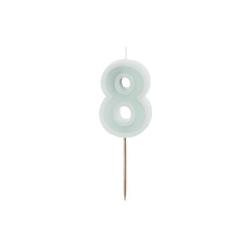 Party Deco Születésnapi gyertya, 8-as számú, világos menta, 6 cm