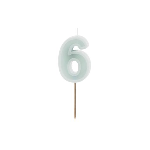 Party Deco Születésnapi gyertya, 6-os számú, világos menta, 6 cm