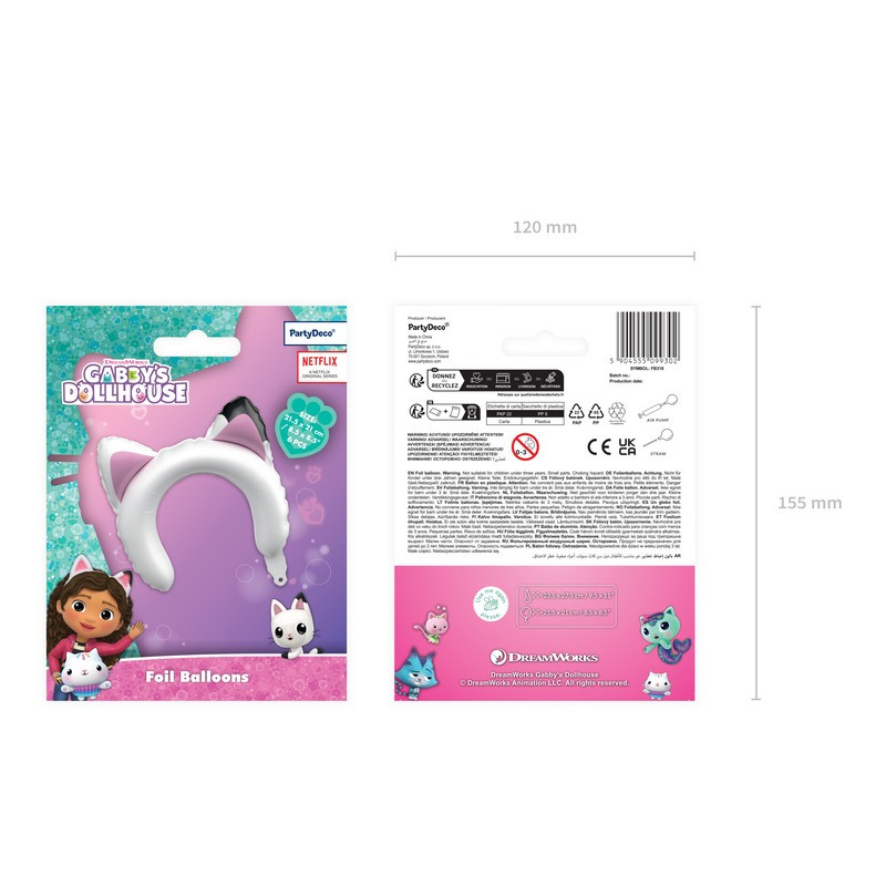 PartyDeco Gabby Macskafül fólia lufi, 6 db